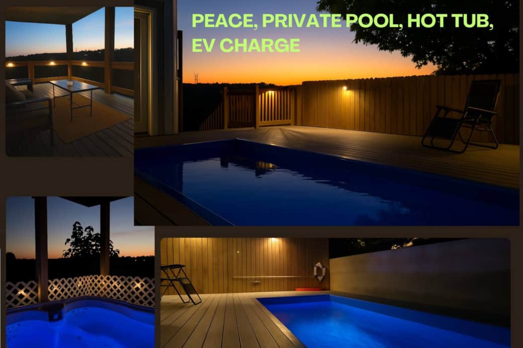 The key features include private fenced heated plunge pool (Mid march to Mid November), fenced pet area, Hot tub, EV charger, wheelchair access, and ample parking.