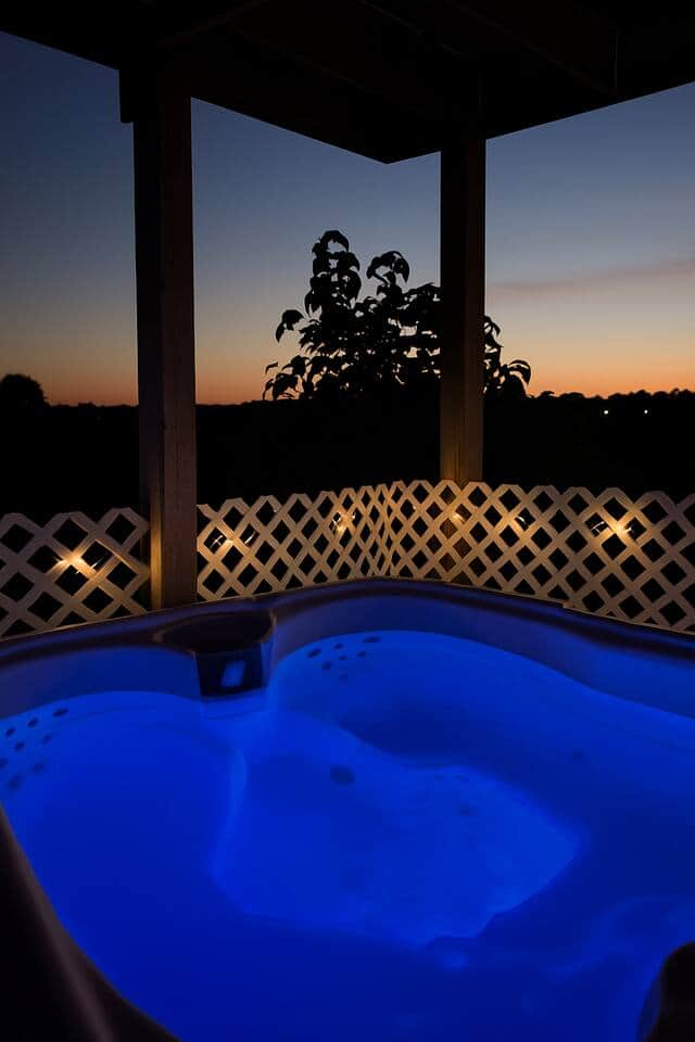 The sunroom has cozy furniture for you to relax and have a fresh cup of coffee. The lower level deck has a hot tub and sitting area.