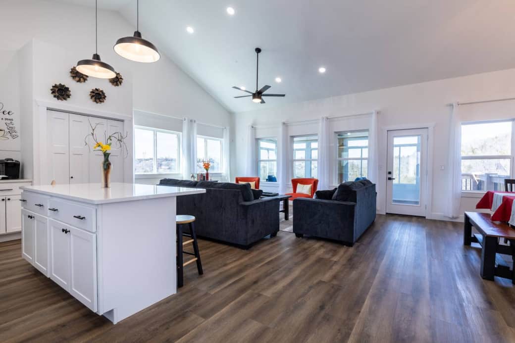 Escape the crowd at this highly rated, newly built sanctuary nestled between Table Rock Lake and the mountains. Designed with modern elegance, this 5-bedroom, 4-bath home has 11 beds and offers privacy, serenity, and direct nature view. You can bring up to two pets (fees apply).